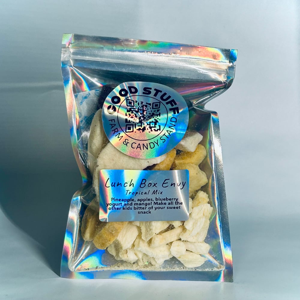The second option is “lunchbox envy” it’s got freeze dried pineapple, mango, apples and blueberry yogurt cubes!